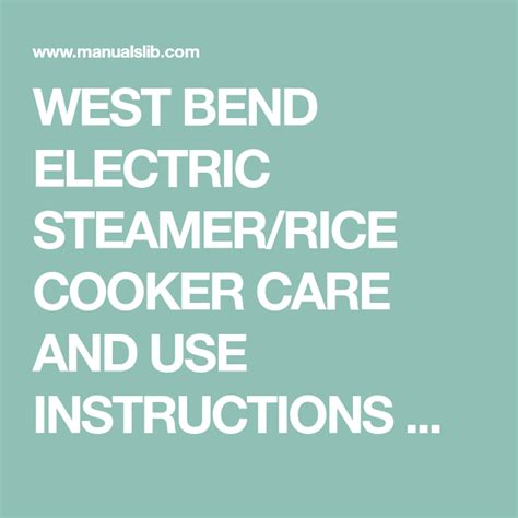 Read Online west bend steamer manual Epub Internet Archive